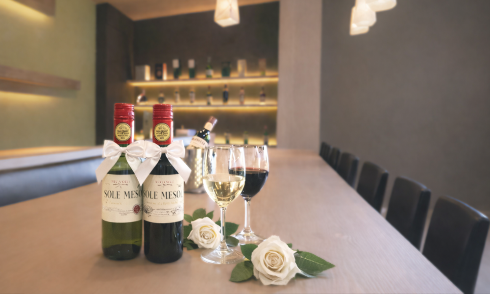 お二人で愉しめる赤・白ワインのハーフボトルをご用意。